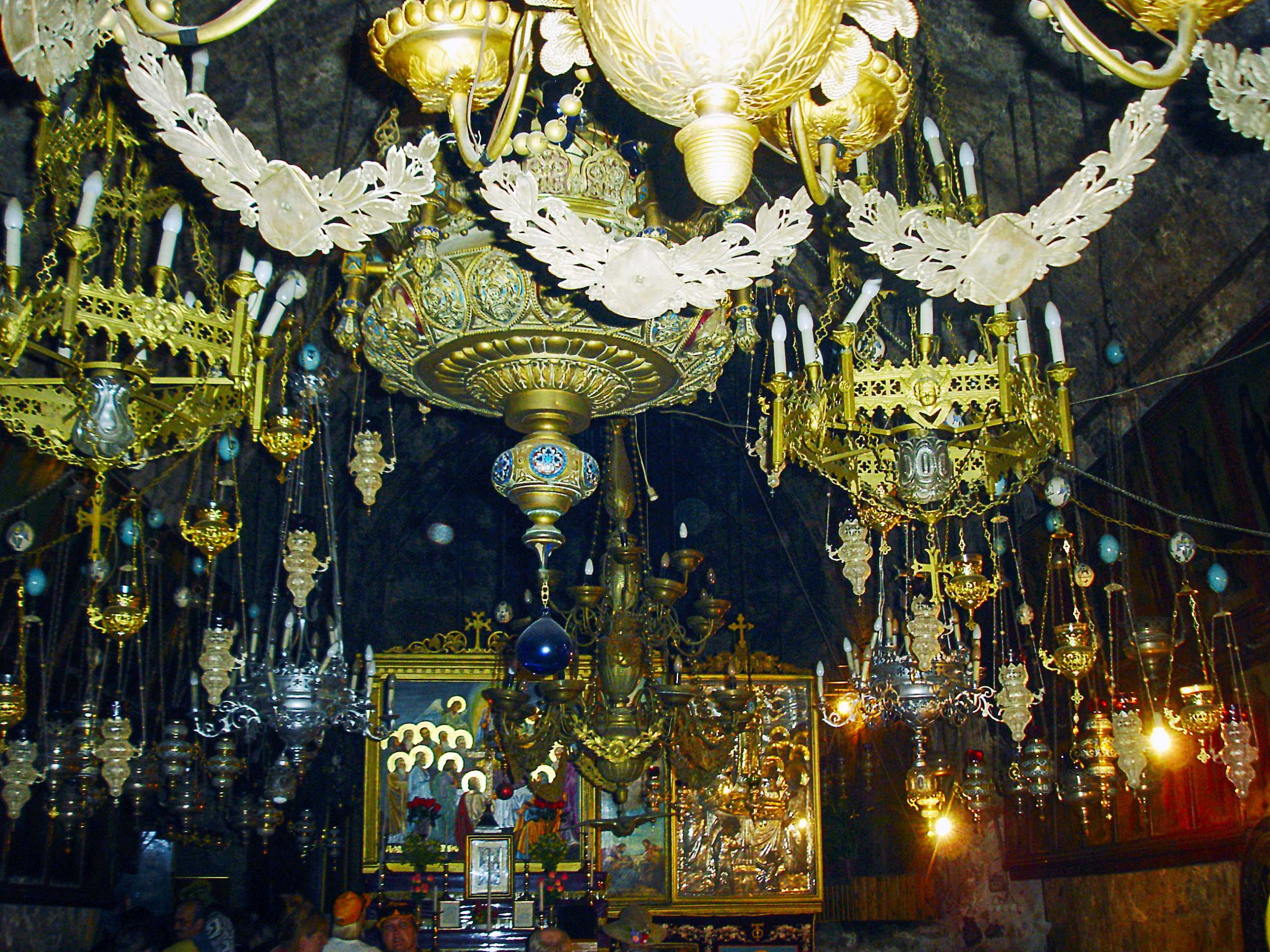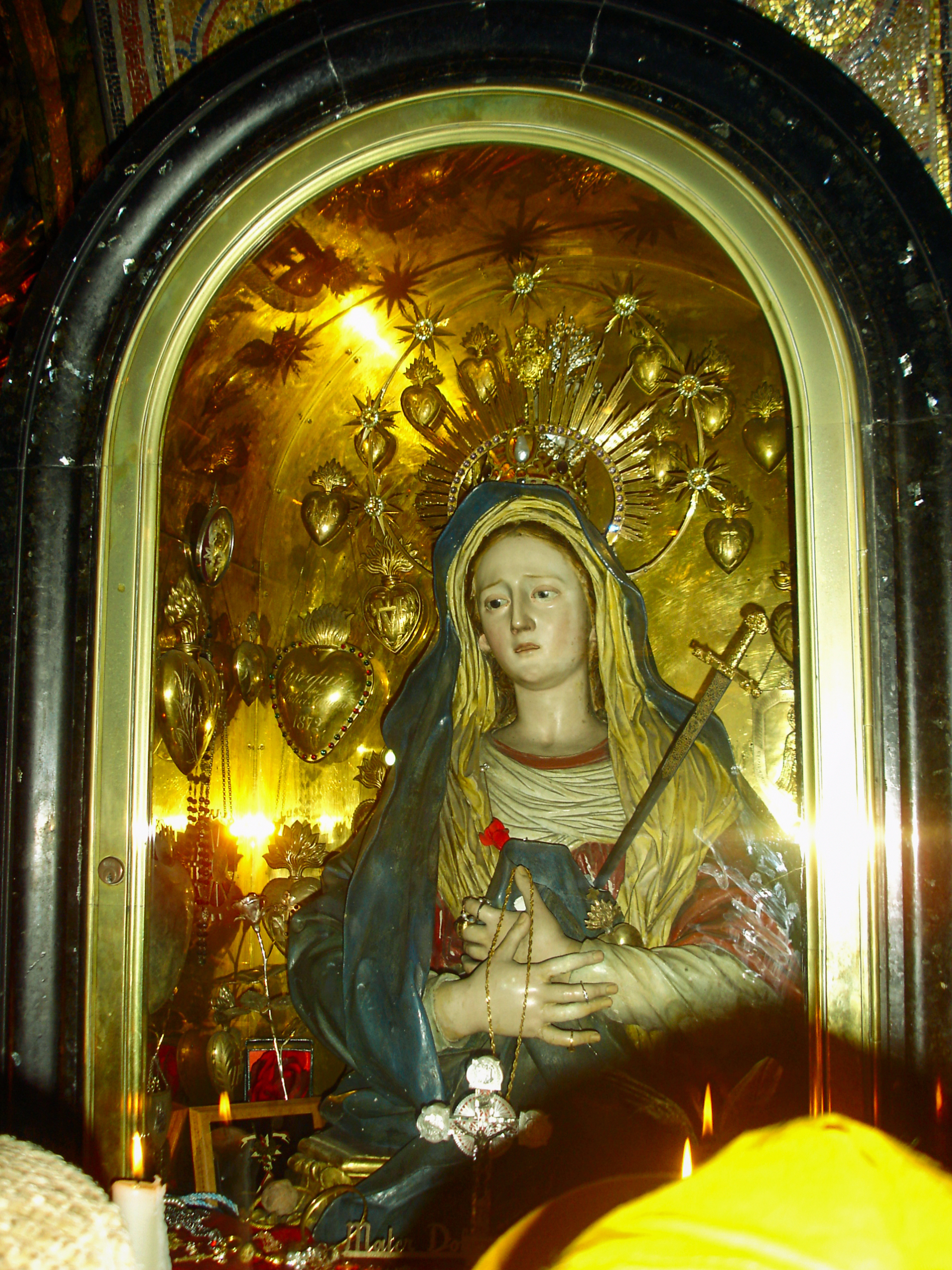 Латинский алтарь со статуей Скорбящей Девы и дарами паломников…