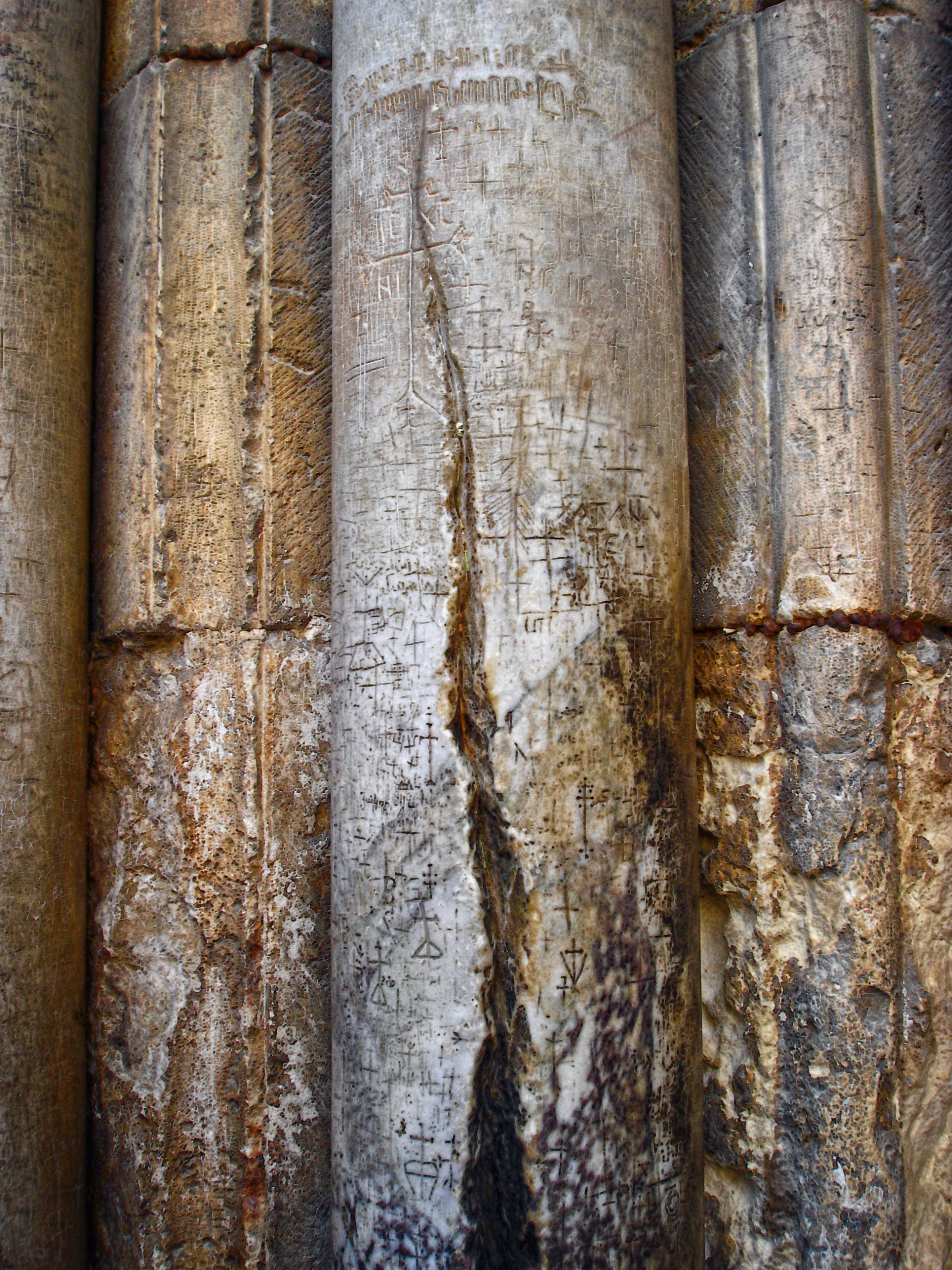Колонна у Храма гроба Господня, в которую ударила молния, после чего на колонную снизошел благодатный огонь…